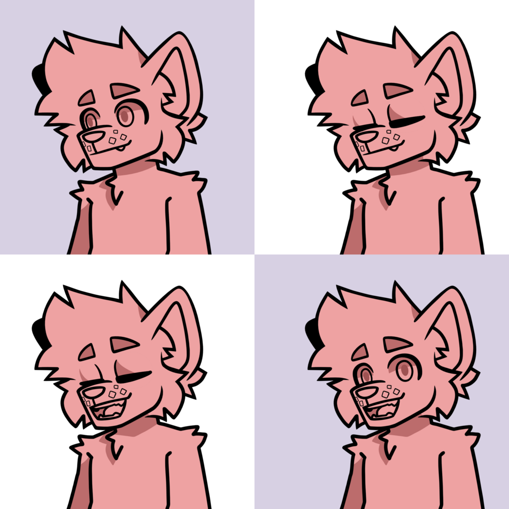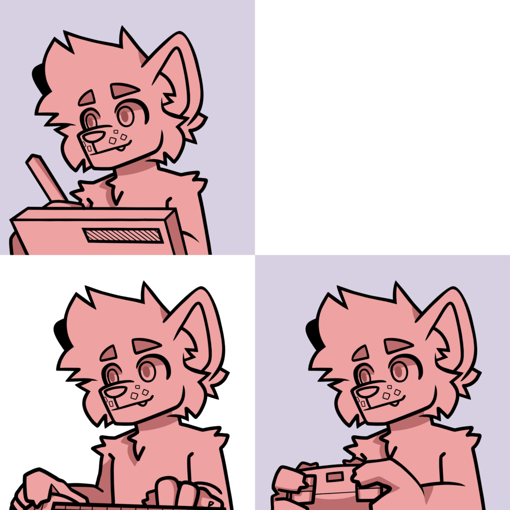 This base comes in PSD format, so make sure your art program can use it. This includes two characters with mouth open and closed, along with eyelids. It also comes with a controller, mouse and keyboard, and a drawing tablet. Each one will have a line art, shadow, and flat layer.
